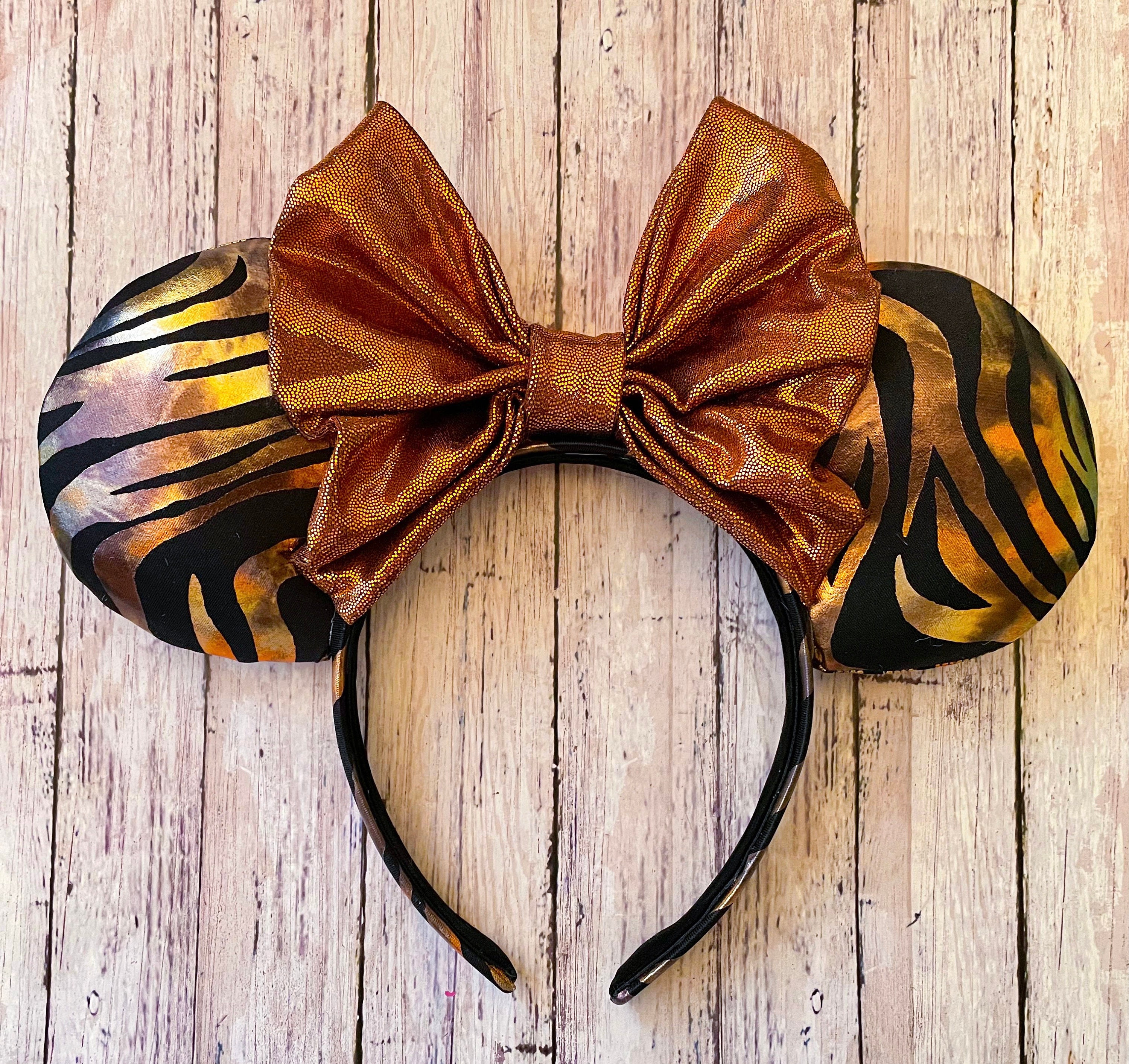 These black and copper colored tiger print ears will make you feel ferocious out in the wild!**TURNAROUND TIME IS 6 WEEKS**