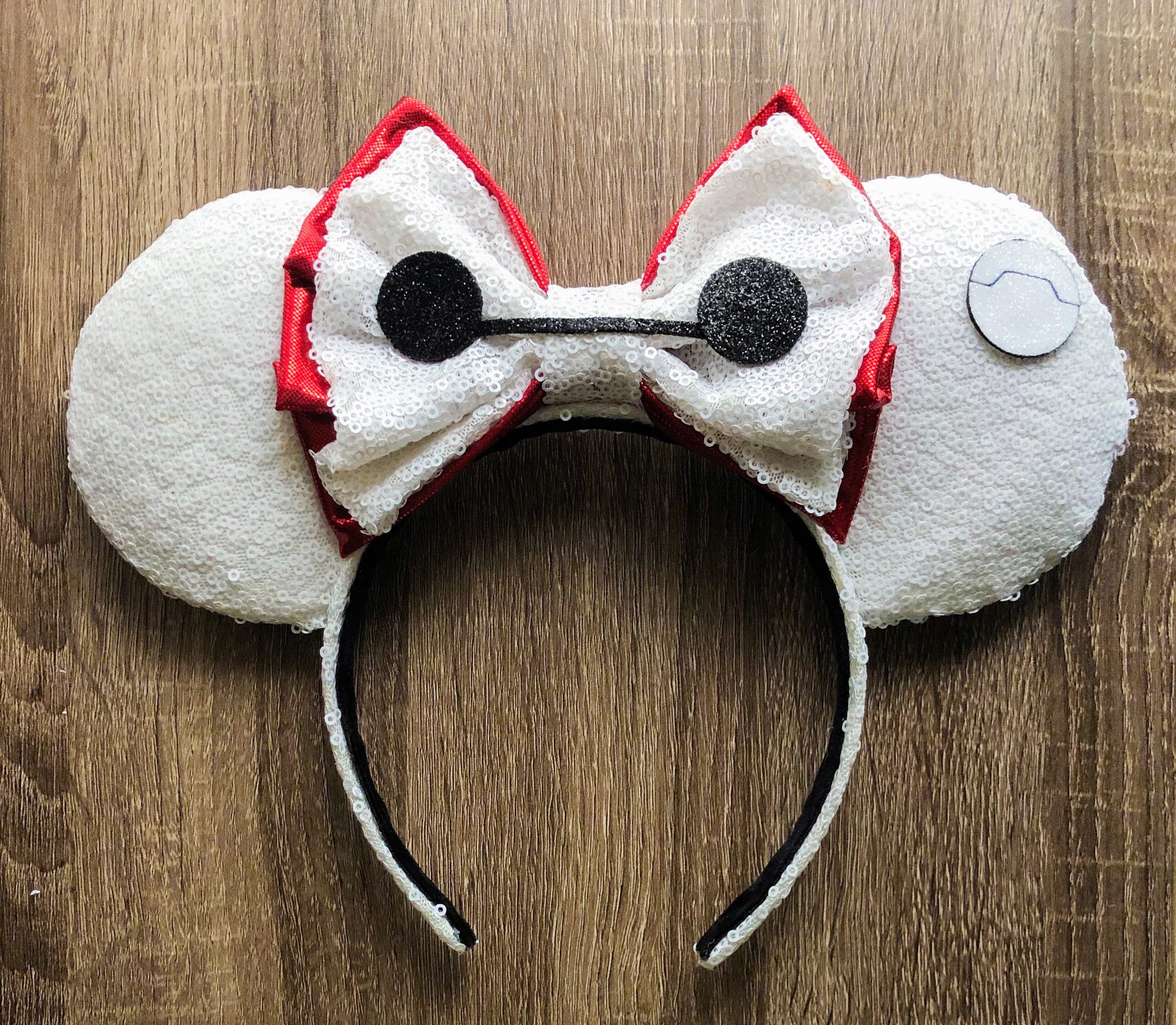 These Baymax ears feature white sequins and red accents**TURNAROUND TIME IS 6 WEEKS**