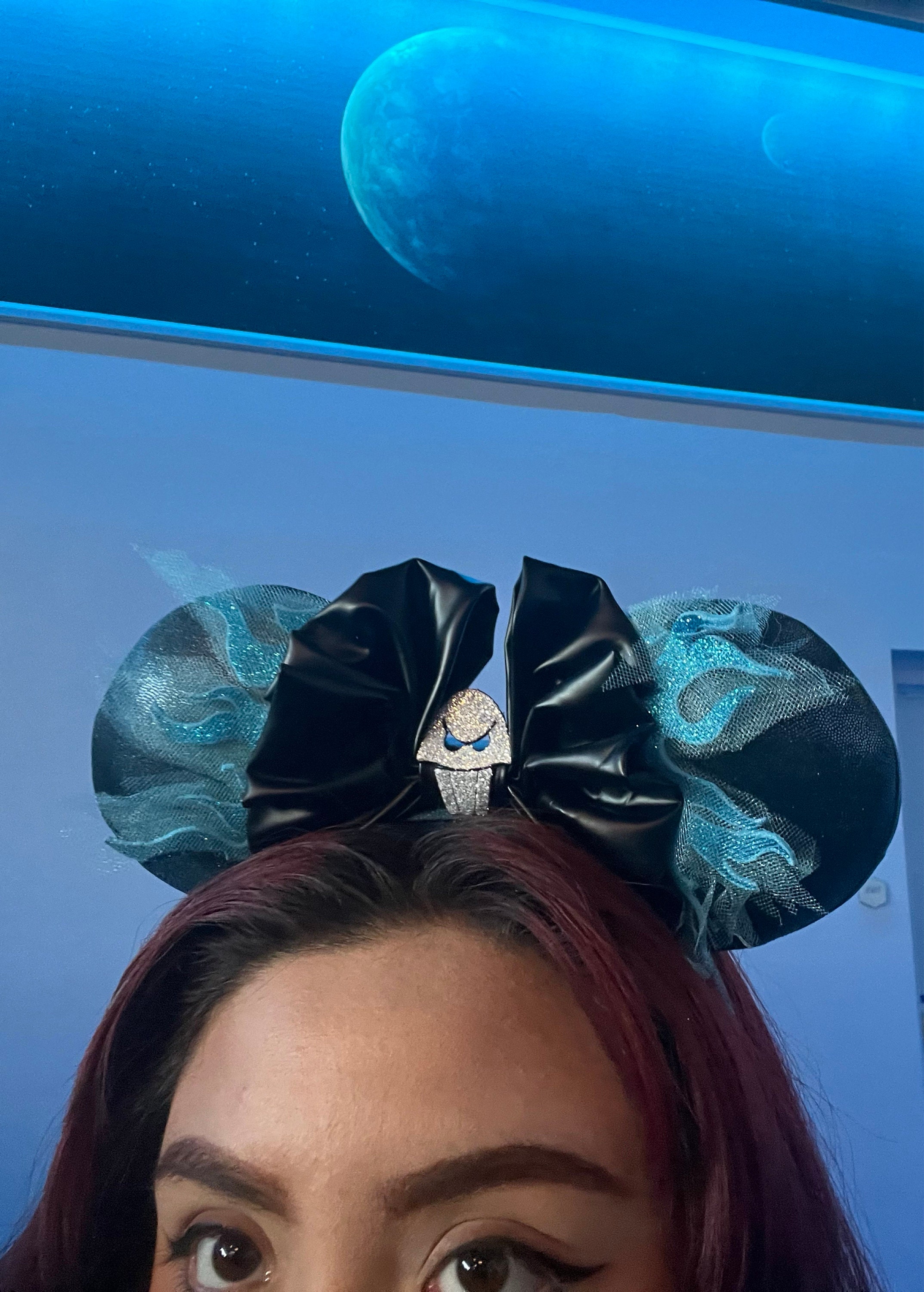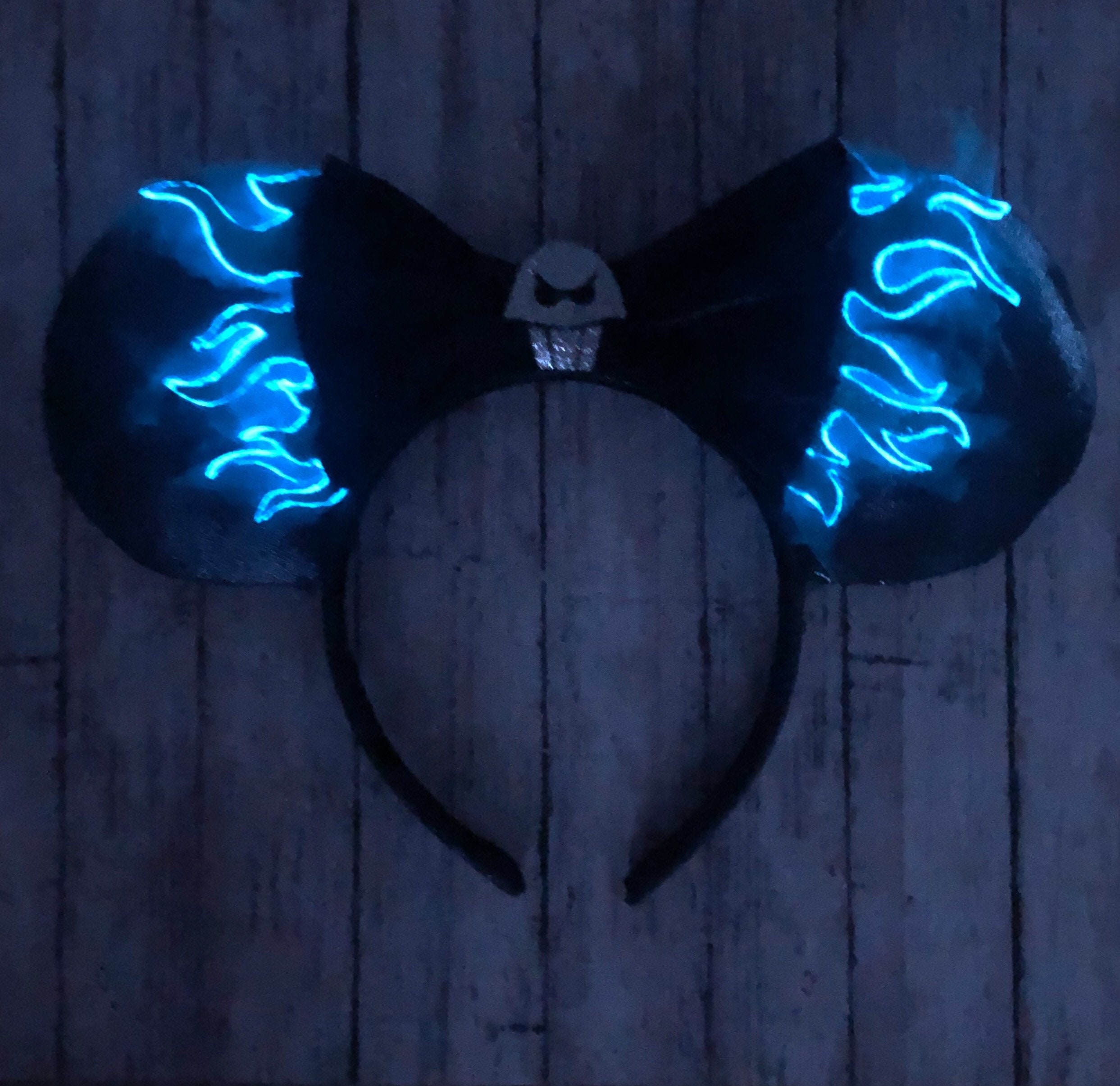 These Ears feature Hades signature blue flames and underworld brooch and they GLOW IN THE DARK!