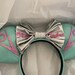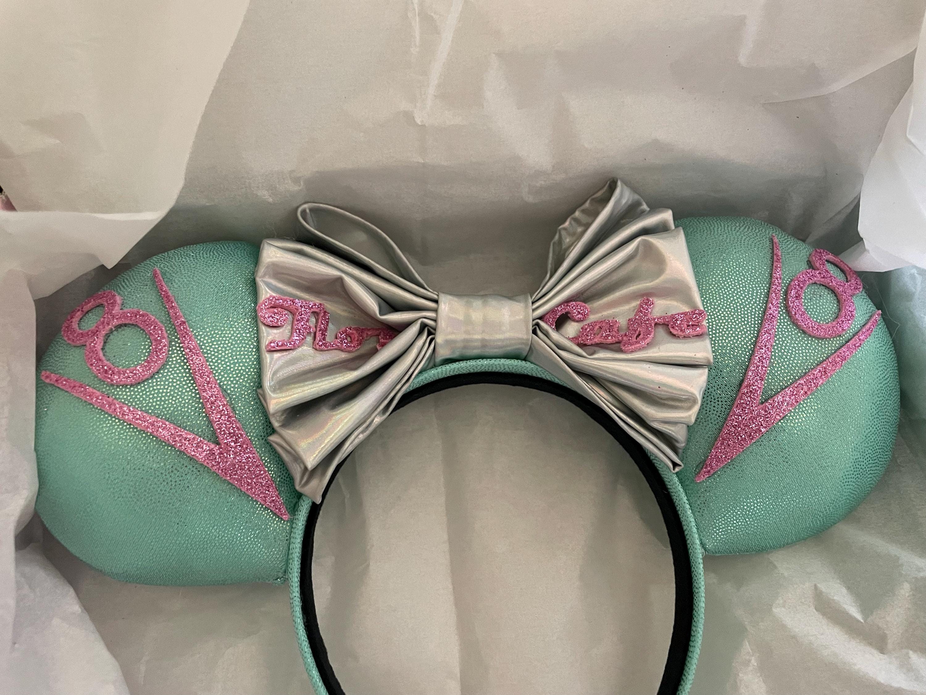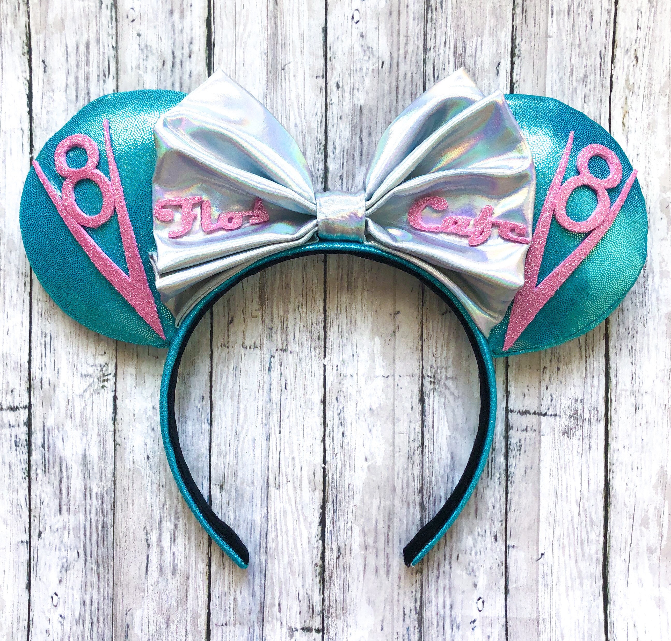 Inspired by Flo’s Cafe in Cars Land these ears feature an Iridescent Teal, Silver and Pink color scheme