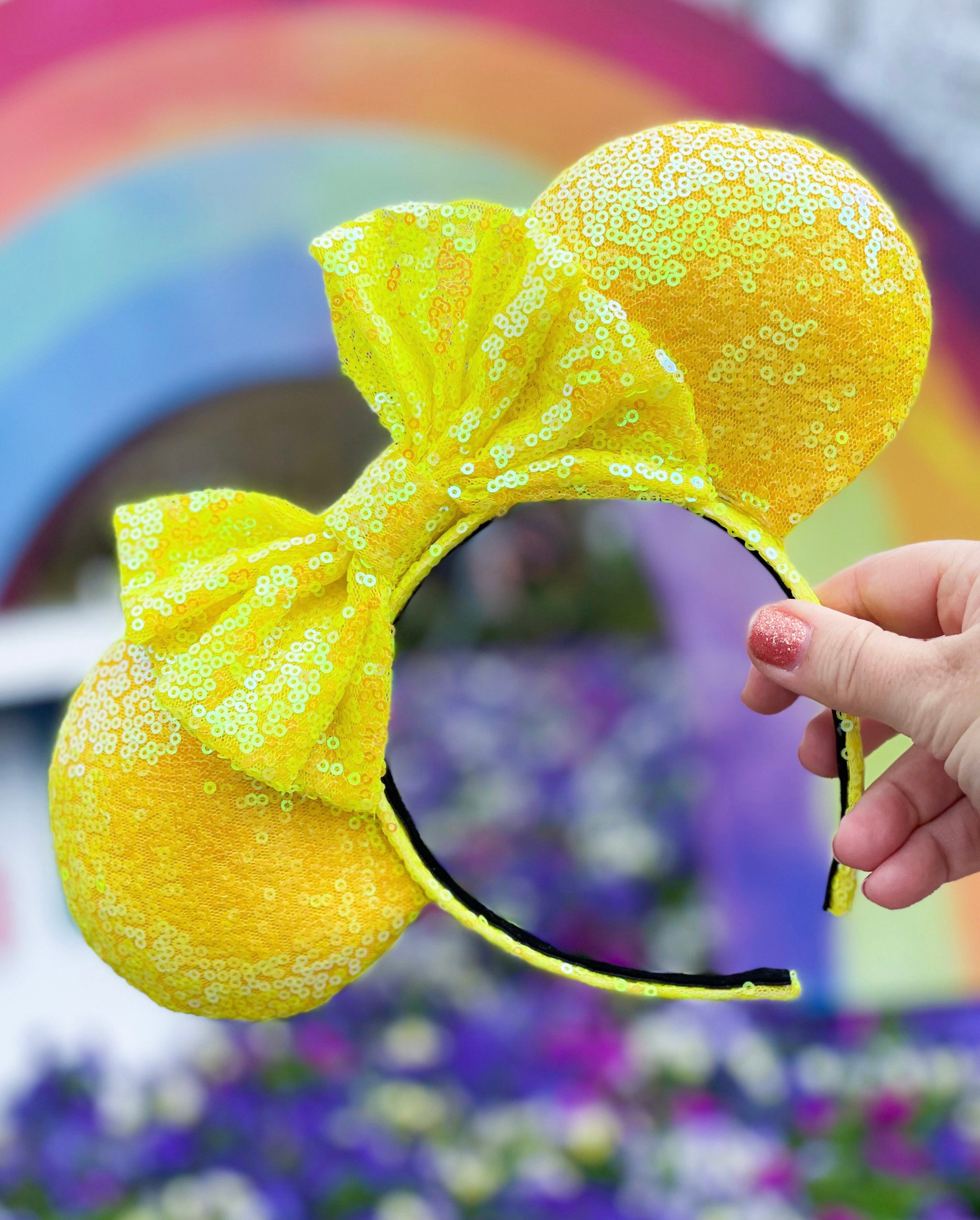 Iridescent yellow sequins with a matching bow**TURNAROUND TIME IS 6 WEEKS**